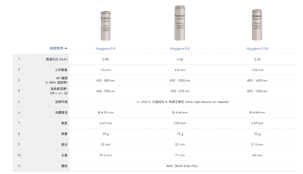 低温兼容材料:在 2K 超低温环境中,采用无氧铜或钛合金镜架,避免材料热胀冷缩导致的光路漂移,同时支持物镜的纳米级 Z 轴调节(如使用压电陶瓷驱动)。同时物镜建议采用低温物镜,我司对应的型号如下。